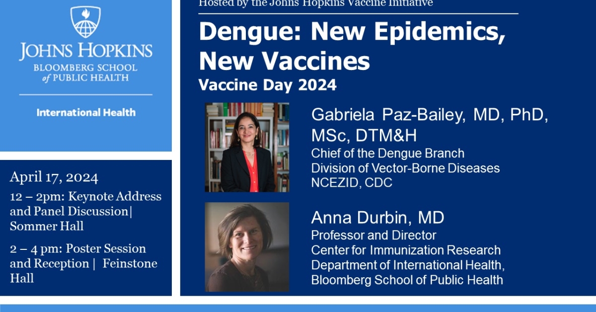This year’s subject: Dengue: New Epidemics, New Vaccines will focus on recent Dengue outbreak trends and strides in vaccine development. Dr. Gabriela Paz-Bailey, Chief of the Dengue Branch at the CDC’s Division of Vector-Borne Diseases will talk about how Dengue outbreaks are spreading throughout the world, and possible reasons for this. Our Director, Dr. Anna Durbin, who is an expert and world leader in flavivirus vaccine clinical trials and development will discuss Dengue vaccines and whether they can help curb the rise in Dengue cases worldwide. We hope you can join us!