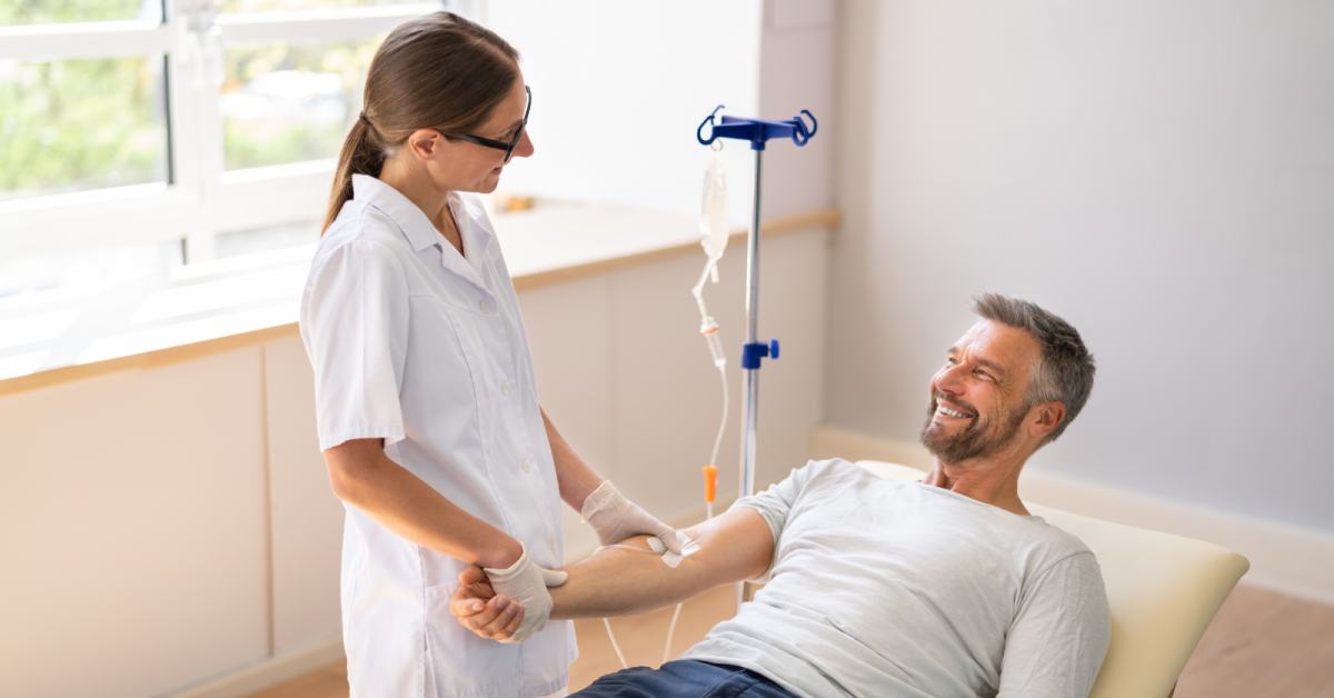 - one IV infusion visit where participants receive study drug or placebo (IV infusion takes one hour, study visit will take 6-8 hours)